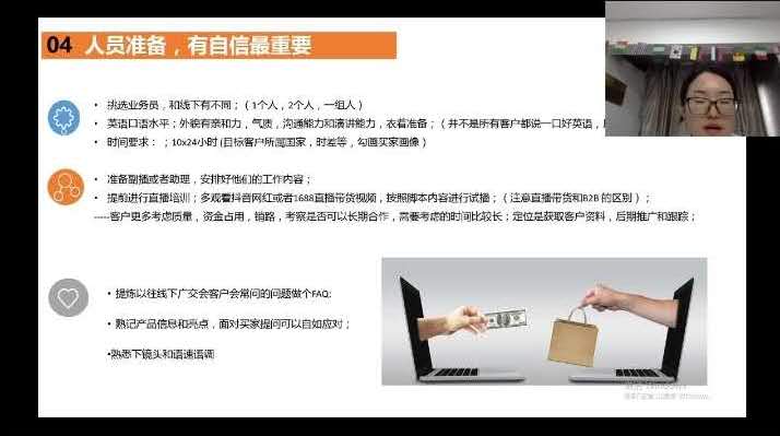 李旻曦老师为大家分享“如何布置线上直播间”,李老师专注研究TikTok海外抖音流量在跨境电商领域的运用,拥有多年互联网创业经验,擅长用互联网科技手段,为企业提供转型升级运营服务。刘小梅经理常年从事外贸进出口采购业务,有着丰富的参展经验,她结合自己的经验,深入浅出地介绍了参加广交会的准备过程和注意事项。