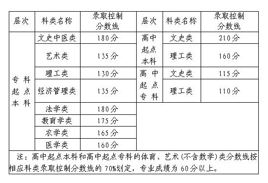 经省教育厅专题会议研究,确定2020年福建省成人高校招生各类录取控制分数线如下: